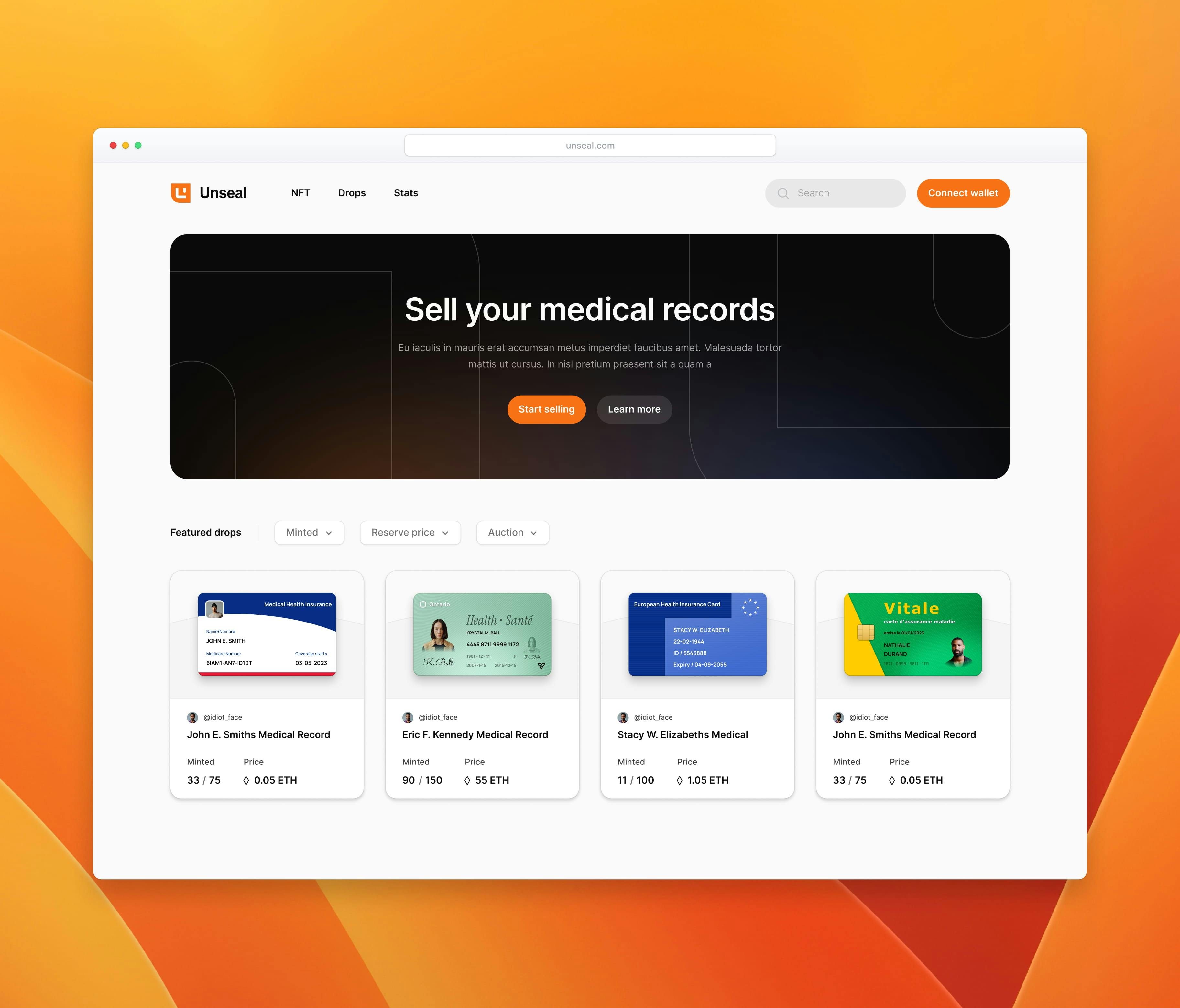 Unseal is the first NFT platform where users can mint and trade NFTs of their own personal health records, allowing them to take control of their data.